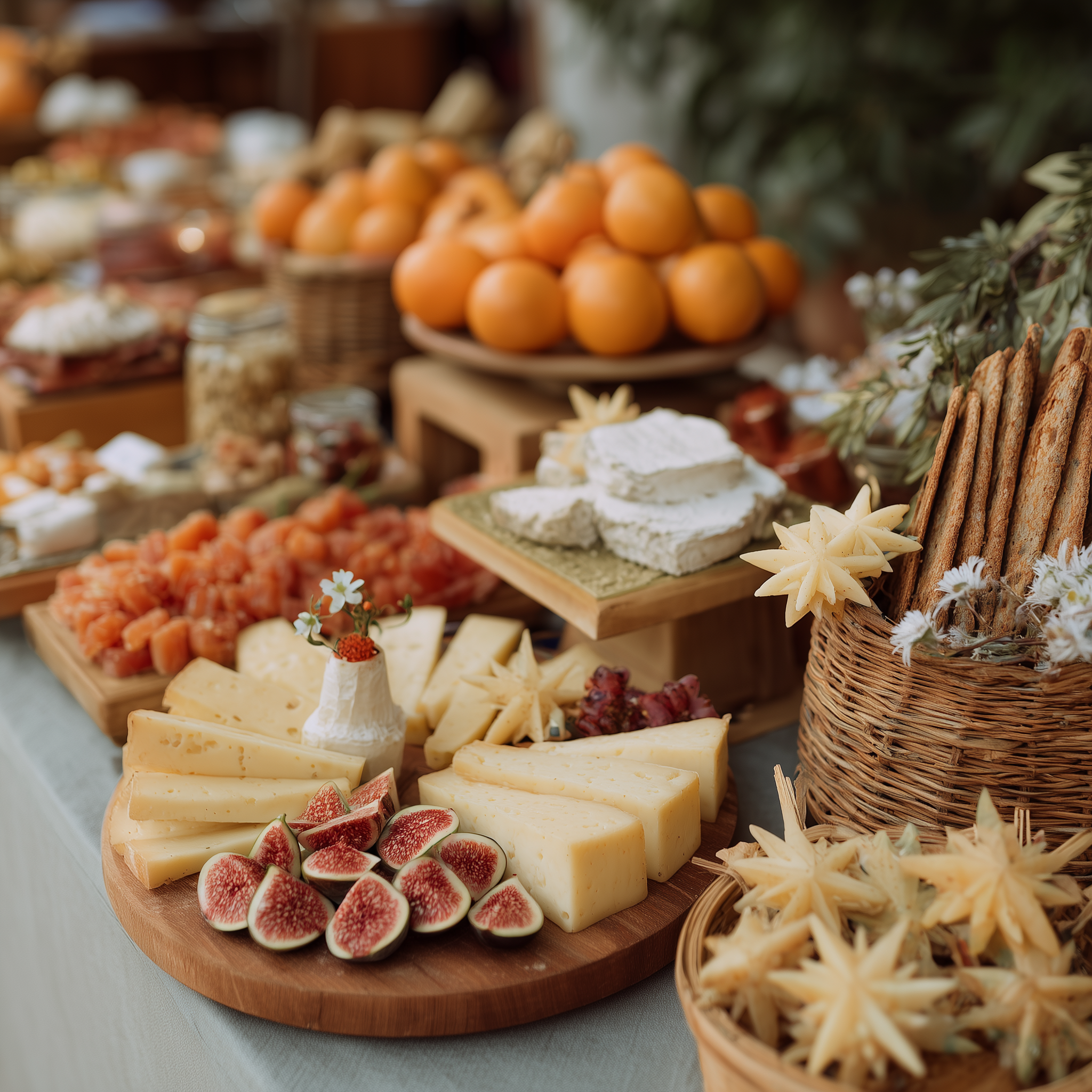 Tábuas cuidadosamente curadas com queijos, enchidos e acompanhamentos para partilhar.